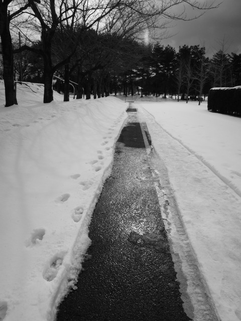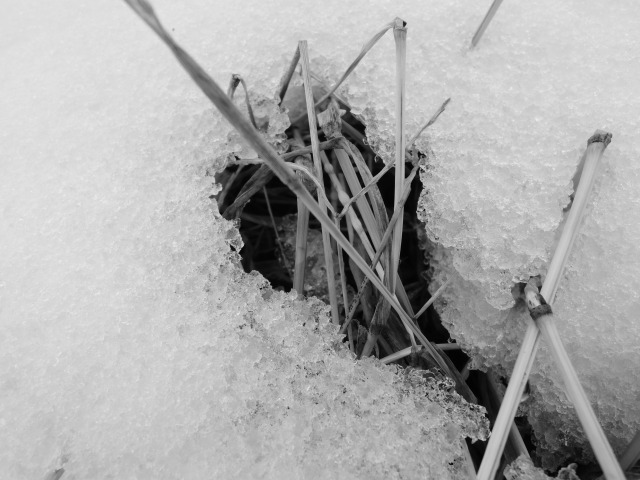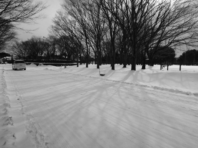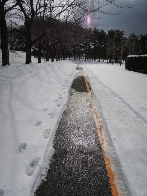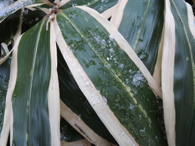 今日は路面にへばり付いた雪?氷?とワサワサと冬の風に揺れる笹の葉を撮ってみました。