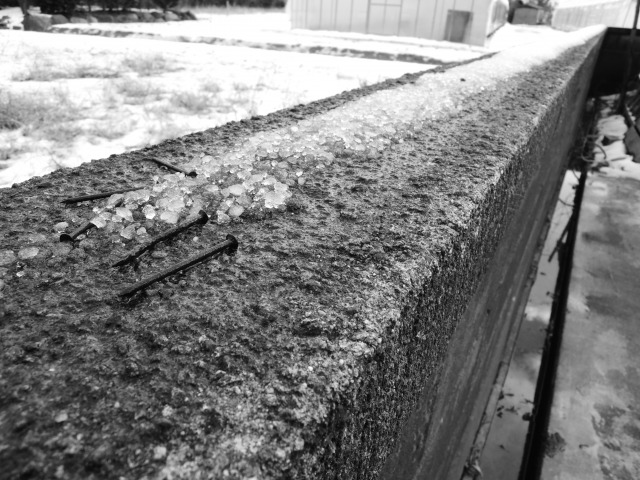庭先にうっすら積もった新雪に残ったタイヤ痕に目を奪われて撮影しました。